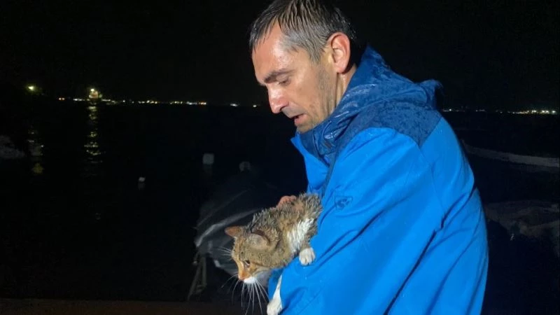 Kediyi dalgaların arasında gördüklerini ve hemen kurtardıklarını söyleyen Hakan Kara, “Dalgaların arasındaydı, yavruları vardı büyük ihtimal, onları bulamadık. Neyse ki bunu kurtardık. Zabıtaya haber vereceğiz şimdi. Böyle durumlarda müdahale ediyorlar, gelip ilgileniyorlar sağ olsunlar. Çok korkmuş, büyük ihtimal yavrularını aramıştır. Şuan hala tedirgin. Tekneyi kurtarmaya geldik, tekneyi kurtarırken bunu da kurtarmak nasip oldu” dedi.