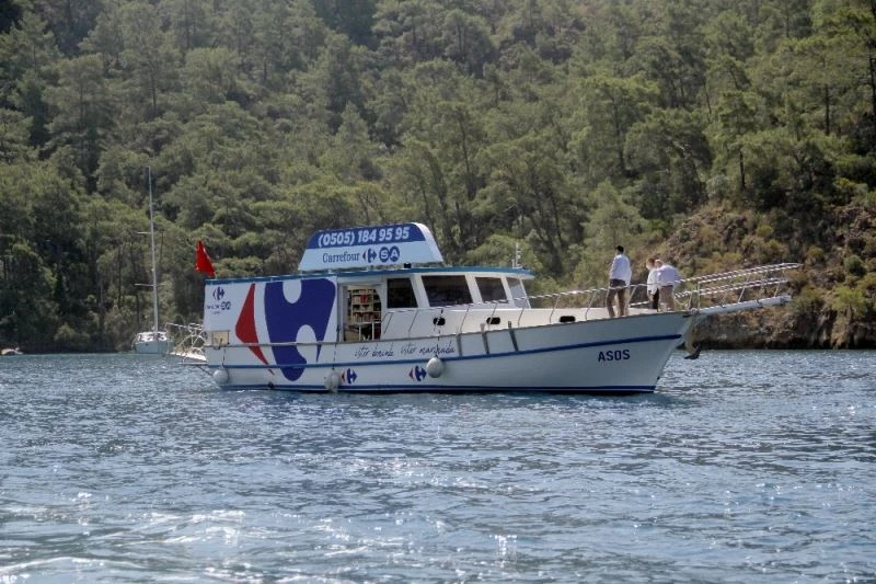 Koylarda hizmet veren yüzen market CarrefourSA Mavi’de normal mağazalardaki fiyatların aynısı uygulanırken, hizmet tatillerini teknelerde yapanlar ve su üstünde yaşayanlara büyük kolaylık sağlıyor.