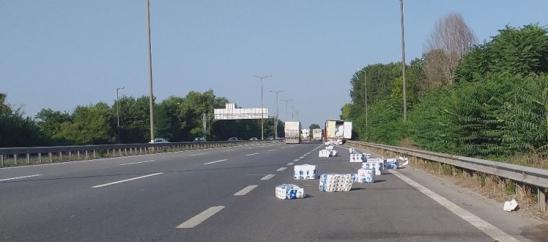 TEM Otoyolu İstanbul istikametinde seyir halinde olan tırın dorse kapakları açıldı. Yola saçılan kağıt peçeteleri sürücü topladı.