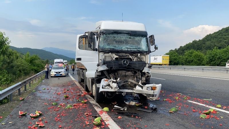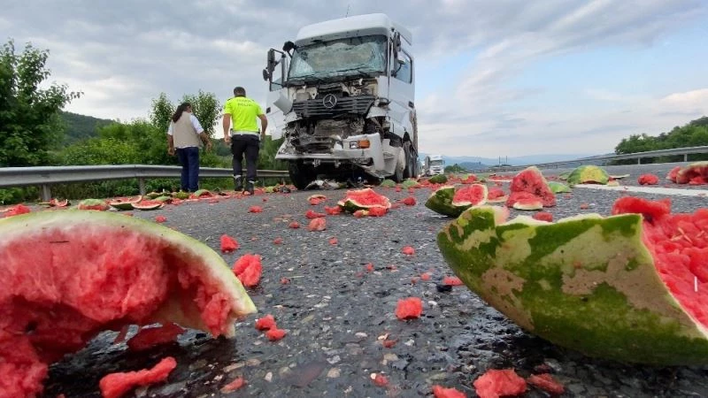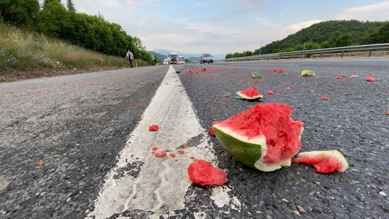 TEM’de kaza sonrası kamyondaki karpuzlar yola saçıldı