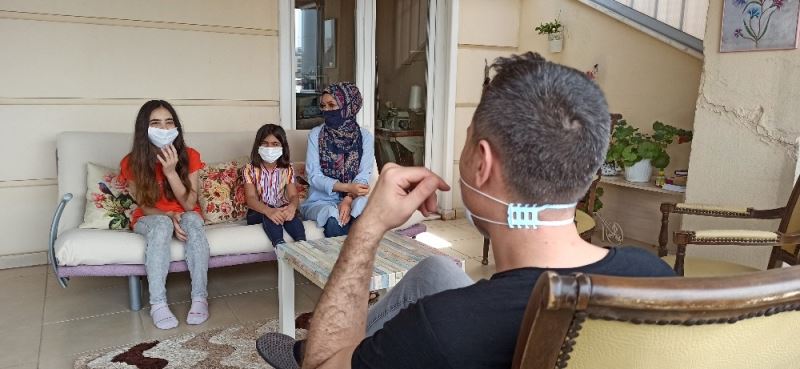 Ailesiyle görüşmek için evin yolunu tutan Sezgin’i kapıda kızları ve eşi karşıladı. Eşi Sevgül (39), kızları Başak (14) ve Ekin (8) babalarını gördüklerinde mutlulukları gözlerinden okunuyordu. Bir an önce babalarına sarılmak isteyen kızları, onun her zaman yanında olduklarını bilmesini istedi. En kısa zamanda bu salgından kurtulacaklarını belirten eşi Sevgül ise, kendisiyle gurur duyduklarını ve görevini tamamlayıp eve dönmesini sabırsızlıkla beklediklerini söyledi.