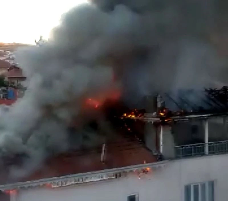 Adıyaman’ın Gölbaşı ilçesinde 3 katlı bir evin terasında yapılan yemeğin ateşi çatı yangınına neden oldu.
