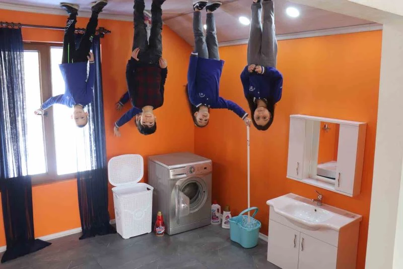 Samsun’un Canik ilçesinde açılan ‘Ters Ev’ çocuklar başta olmak üzere gençlerin ve yetişkinlerin yoğun ilgisini çekiyor. Bütün eşyaların ters olduğu ev baş döndürüyor.