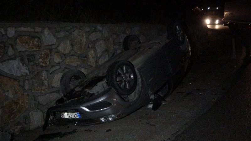 Tırdan düşen demirlere çarpan otomobil ters döndü; 3 yaralı