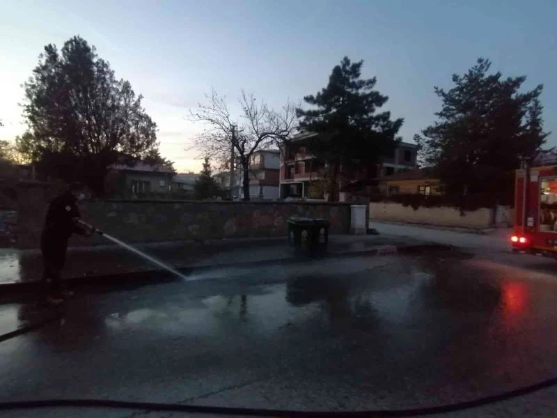 İtfaiye ekipleri gerekli tedbiri alarak asfaltta yıkama çalışması yaptı. Polis olay yerinde incelemede bulundu.