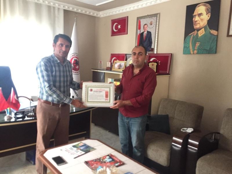 Batman’ın Sason ilçesinde faaliyet yürüten Sason Şehit Aileleri, Gazilerle Yardımlaşma ve Dayanışma Derneği Başkanı Mutalip Çelik, TOÇ Bir-Sen Batman, Siirt ve Mardin İl Başkanı Mehmet Sıddık Aslanlı’yı ağırladı. Başkan Arslanlı, Çelik’e yaptıkları çalışmalardan ötürü teşekkür belgesi taktim etti.