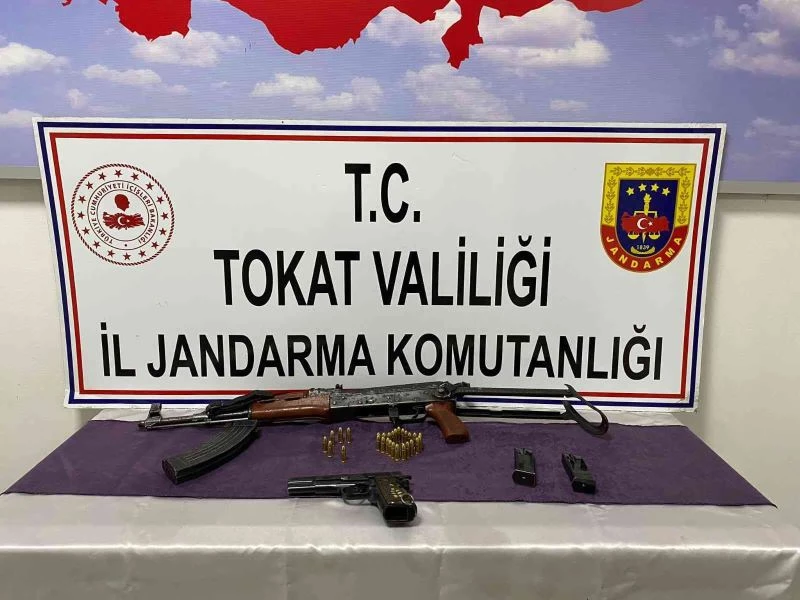 Edinilen bilgiye göre; Tokat İl Jandarma Komutanlığı ekipleri bir şahsın evinde yurtdışı yapımı yasadışı silah sakladığı duyumu alarak operasyon düzenledi. Kemalpaşa köyünde ikamet eden E.A. (45) şahsın evinde eklentilerinde ve araçlarında aram yapıldı. Yapılan aramada 1 adet 7.62 mm çapında AK-47 kalaşnikof marka tüfek, 1 adet 9 mm çapında Brownıng marka tabanca, 2 adet tabancaya ait şarjör, 28 adet tabanca fişeği mühimmat ele geçirildi. Gözaltına alınan şahıs hakkında adli işlem başlatıldı.