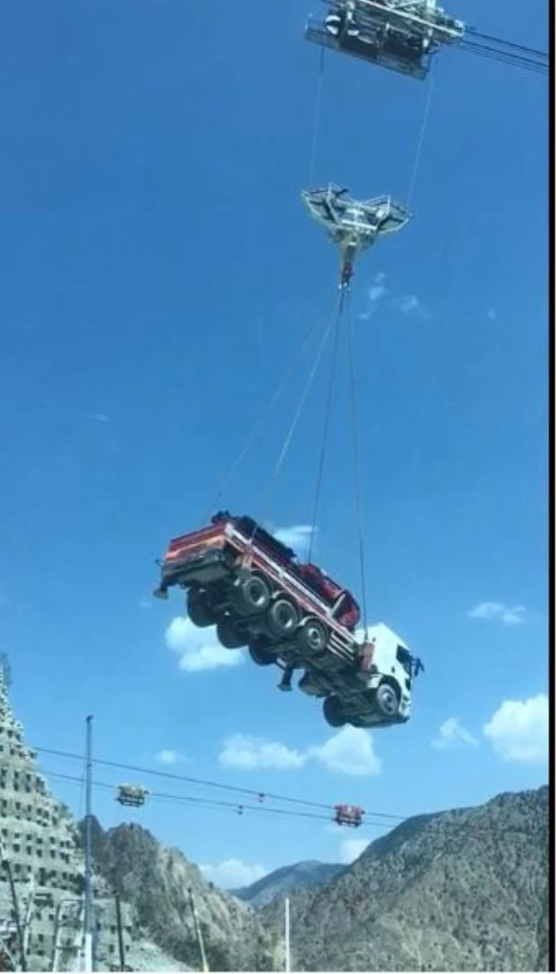 Yapımı devam eden ve geçtiğimiz hafta sonu 3 milyonuncu metreküp betonu Cumhurbaşkanı Recep Tayyip Erdoğan’ın da katılımı ile video konferans yolu dökülen Artvin’in Yusufeli Barajı inşaatında yamaçtan yamaca kurulan kablolu vinç sistemi ile havadan taşınan 30 tonluk iş aracı adeta beşik gibi sallandı. O anlar ise cep telefonu tarafından kaydedildi.