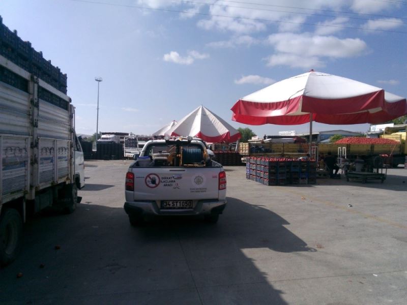 Tonlarca sebze ve meyvenin giriş yaptığı halde ilaçlama