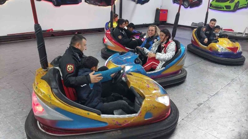 Tekirdağ’da okuma yazma öğretilen ortaokul çağındaki çeşitli yaş gruplarından çocuklar, alışveriş merkezinin oyuncak katında polislerle doyasıya eğlendi.