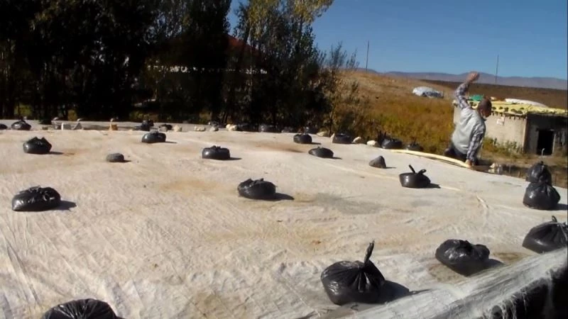 Muş’ta havaların soğumasıyla birlikte kış hazırlıklarına başlayan vatandaşlar, toprak evlerin damını kar ve yağmurdan korumak için naylonlarla kapatmaya başladı.
