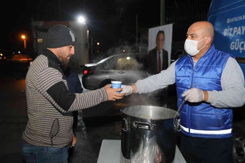 Antalya Büyükşehir Belediyesi, Antalya Toptancı Hali’nde güne sabah 04.00’de başlayan hal esnafı ve çiftçilere sıcak çorba ikramında bulunuyor.