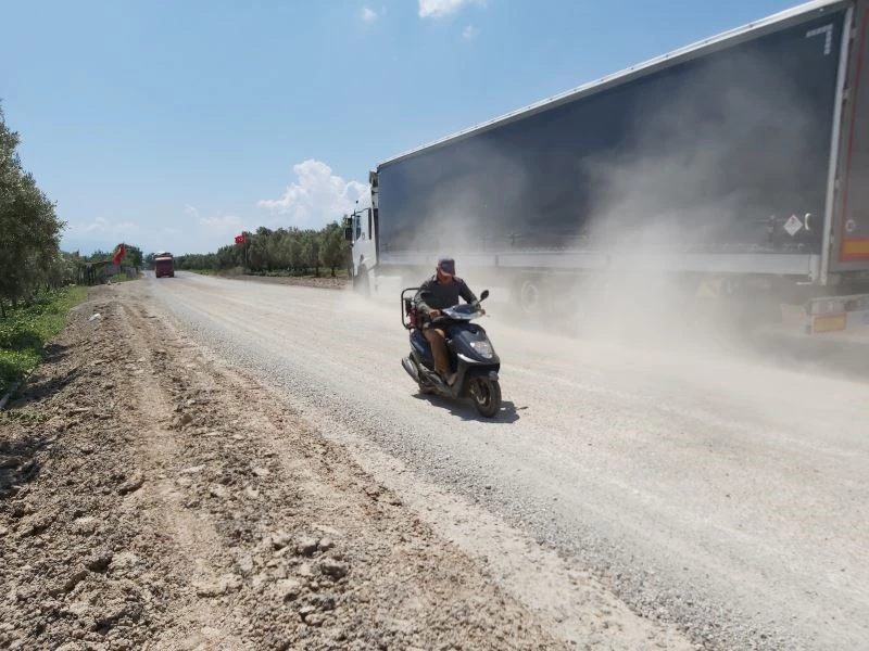 Bursa’nın İznik ilçesinde mıcırlı asfalttan çıkan toz zeytin ve meyve bahçelerine zarar veriyor.