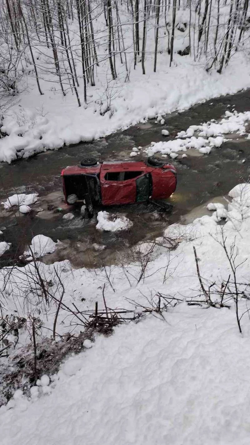 Kaza, Tonya ilçesi Kaleönü Mahallesi’nde meydana geldi. Edinilen bilgiye göre, Erikbeli Yaylası’na gittiği öğrenilen Hakan Fazlıoğlu (45) yönetimindeki 61 TF 140 plakalı Toyota marka pikap, buzlanma nedeniyle sürücünün direksiyon hakimiyetini kaybetmesi sonucu dereye uçtu. Derede yan yatan araçtan kendi imkanları ile çıkan sürücü, yol kenarına ulaşarak çevredeki vatandaşlardan yardım istedi. İhbar üzerine kaza yerine sağlık ve jandarma ekipleri sevk edildi. Sağlık ekipleri tarafından ilk müdahalesi yapılan Hakan Fazlıoğlu, Tonya Devlet Hastanesine kaldırıldı. Buradan ise ambulansla Vakfıkebir Devlet Hastanesine sevk edilen sürücünün hayati tehlikesinin olmadığı öğrenildi.