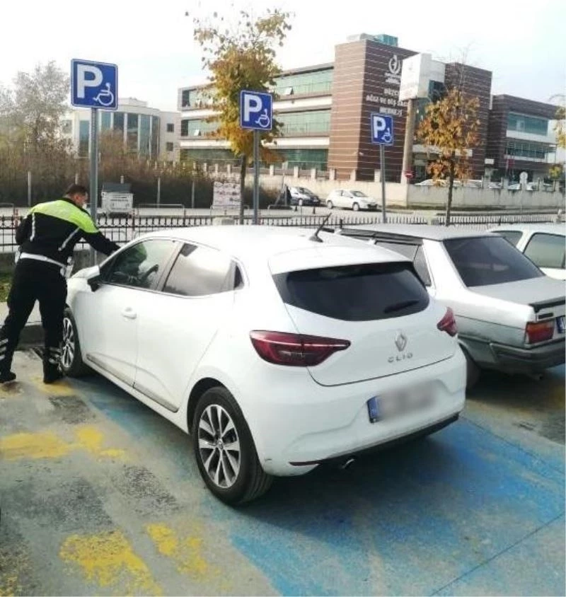 Trafik ekipleri, engelli parklarına park eden sürücülere ceza yağdırdı