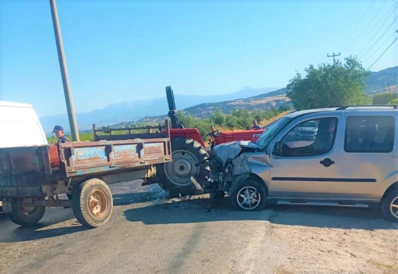 Traktör ile otomobil kafa kafaya çarpıştı: 4 yaralı