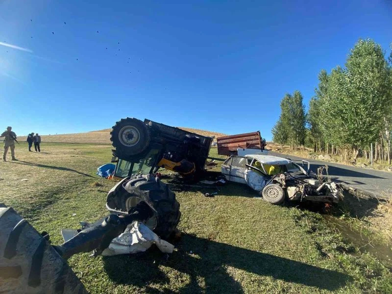 Traktör ile otomobil kafa kafaya çarpıştı: 5 yaralı