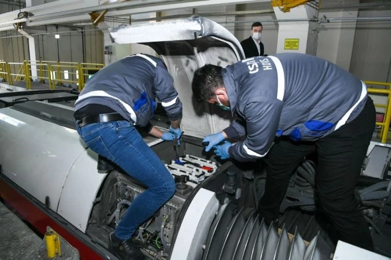 Büyükşehir Belediyesi Türkiye’nin ilk raylı sistemler aküsünü üreten ASPİLSAN ile tramvay filosunun akülerini yerlileriyle yeniledi. Yerli akünün, daha hızlı şarj olabilme, düşük saf su tüketimi, korozyon yapıcı gaz salınımı yapmaması ve daha uzun ömürlü olduğunu belirten Başkan Mustafa Demir, “Teknolojiye önem veren bir belediye olarak yerli üretimi çok önemsiyoruz” dedi.