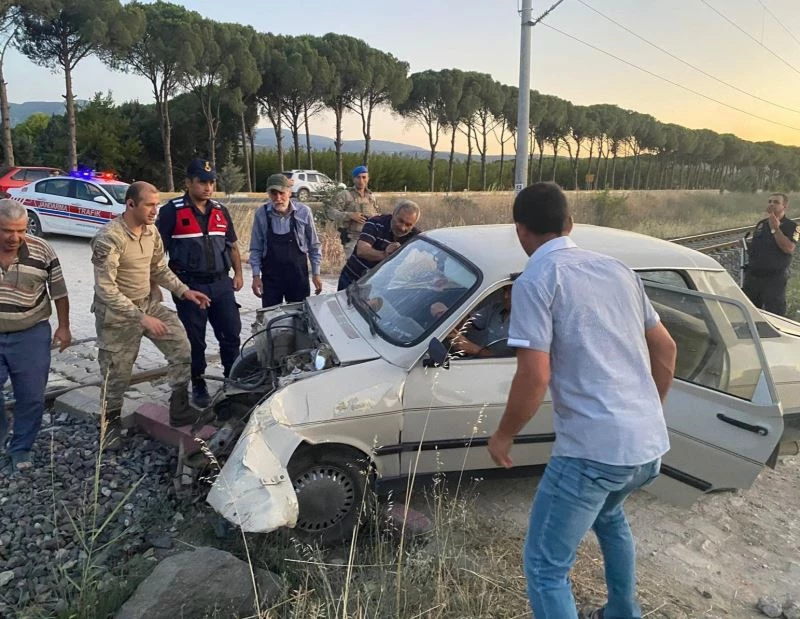 Alınan bilgiye göre kaza, saat 21.30 sıralarında, Manisa’nın Yunusemre ilçesi Muradiye Mahallesi’nde meydana geldi. Muradiye Mahallesi’ndeki hemzemin geçitte İzmir-Uşak seferini yapan yolcu treni, kontrolsüz şekilde hemzemin geçide girdiği iddia edilen 45 ZC 3500 plakalı otomobile çarptı. Trenin çarpma şiddetiyle otomobilin ön kısmı parçalanarak tren raylarına sıkıştı. Hurdaya dönen otomobilde, sürücü İsmail Kırlı (51) ve yolcu konumundaki eşi Gülten Kırlı (49) kazayı yara almadan atlattı. Tren raylarına sıkışan otomobil, jandarma ve çevredeki vatandaşlar tarafından sıkıştığı yerden çıkartıldı. Yaklaşık yarım saat kaza nedeniyle rötar yapan tren, otomobilin raylardan çıkarılmasının ardından seferine devam etti. Kazayla ilgili jandarma ekipleri tarafından çalışma başlatıldı.