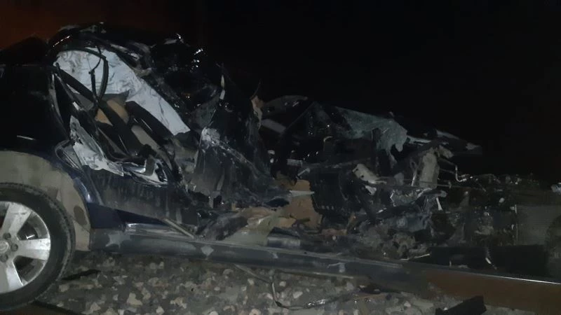 Trenin çarptığı otomobilin sürücüsü canını araçtan son anda atlayarak kurtardı