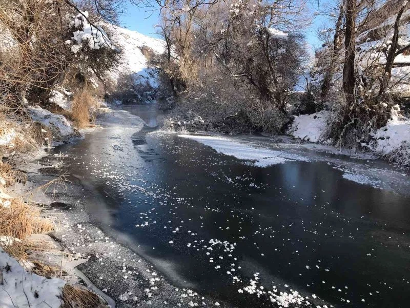 Tufanbeyli’de 4 gün aralıksız yağan karın ardından soğuk hava etkili olmaya başladı. Hava sıcaklığının eksi 25 dereceye kadar düştüğü ilçede göllerin yanı sıra Göksu Irmağı da buz tuttu. Irmağın üzerinde buz tabakası oluşurken, altından su akmaya devam etti.