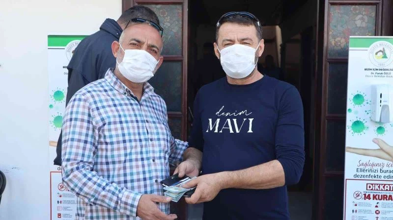 Düzce Anıtpark Meydanında kurulan yöresel ürünler fuarında Hatay yöresini temsil eden ürünleri satan Murat Arslan, bankamatikten çektiği bin 350 dolar ile standına geri dönerken cüzdanını düşürdü. İçinde bin 350 dolar bulunan cüzdanı bulan Salih Metin adlı vatandaş, cüzdanı en yakın zabıta ekibine götürerek teslim etti. Düzce Belediyesi Zabıta Müdürlüğü ekipleri, içi para dolu cüzdanın sahibini bulmak için başlattığı çalışmada, banka kartlarından yola çıkarak şahsın telefonuna ulaştı. Arslan’ı zabıta müdürlüğüne davet ederek parayı bulan vatandaşla bir araya getiren zabıta ekipleri tutanak altında cüzdanı sahibine teslim etti.