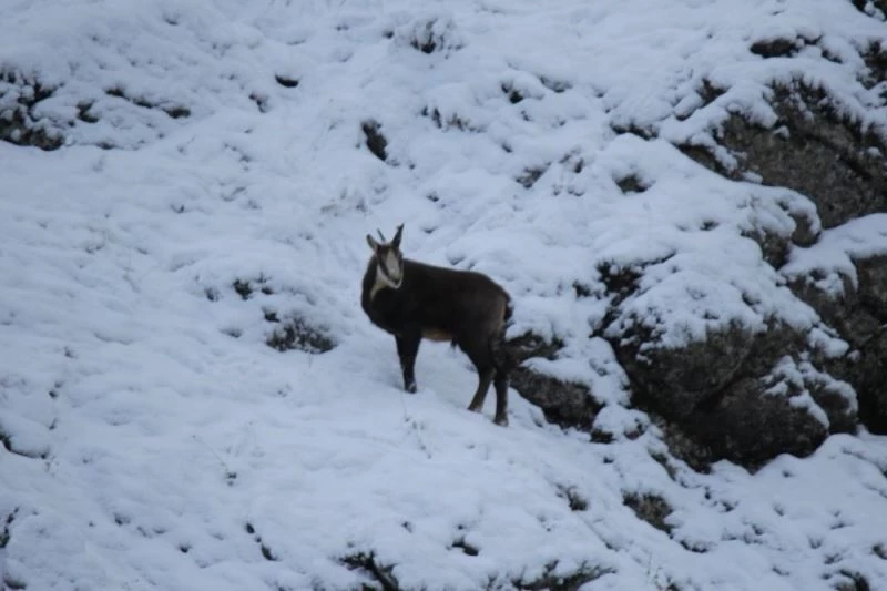 Tunceli’de koruma altında bulunan çengel boynuzlu dağ keçileri, bir firmada çalışan, fırsat buldukça da doğa fotoğrafçılığı yapan Muzaffer Akyüz tarafından kar altında yiyecek ararken görüntülendi. Keçileri, Munzur Dağları’nın zirvelerine yakın bir noktada çeken Akyüz, “Elektrik arızasını gidermek için gittiğimiz bir köyün zirvelerinde keçilere denk geldim. Yanımda bulunan fotoğraf makinesiyle karda yiyecek arayan şamuaları görüntüledim” dedi.