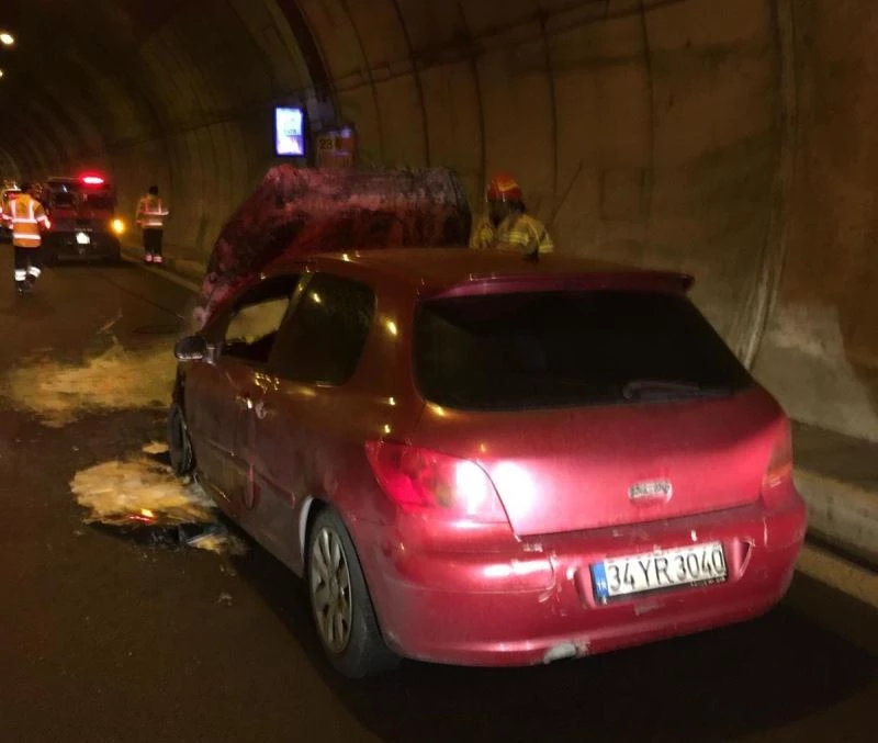 İstanbul-İzmir otoyolunun Orhangazi tünelinde seyir halindeki araç alev aldı. Otomobilde büyük hasar meydana geldi.