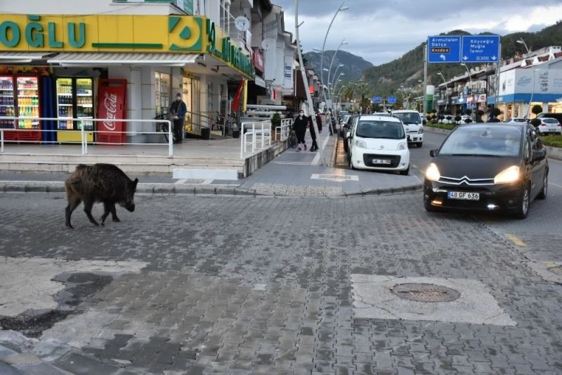 Marmaris’te vatandaşlar tarafından kaydedilen görüntülerde zaman zaman sayılara 30 başa kadar ulaşan domuz sürüleri gruplar halinde adeta şehir turu atıyor. Marmaris’in Ulusal Egemenlik Caddesi’nde adeta geçti yapan domuzlar çöp konteynırlarını kontrol edip yiyecek arıyor. Çocuk parklarındaki yeşillik alanlarda dolaşıp geziniyor. Çevredeki vatandaşların şaşkın bakışlarına aldırış etmeden yola da çıkan yaban domuzları zaman zaman sürücülere panik yaşatırken zaman zaman da kazalara neden oluyor. Cep telefonları ile domuzları görüntüleyen vatandaşlar "Yollara da çıkmaya başladılar artık tehlikeli olmaya başladı" diyerek domuz sürülerine karşı sürücülerin ve vatandaşların dikkatli olmalarını istediler.
