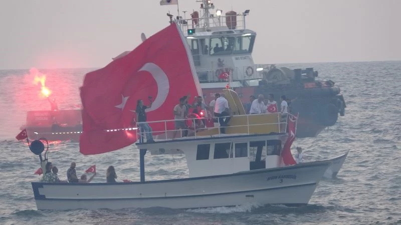 Türk bayrakları ile donatılan teknelerden “Saygı Gezisi”