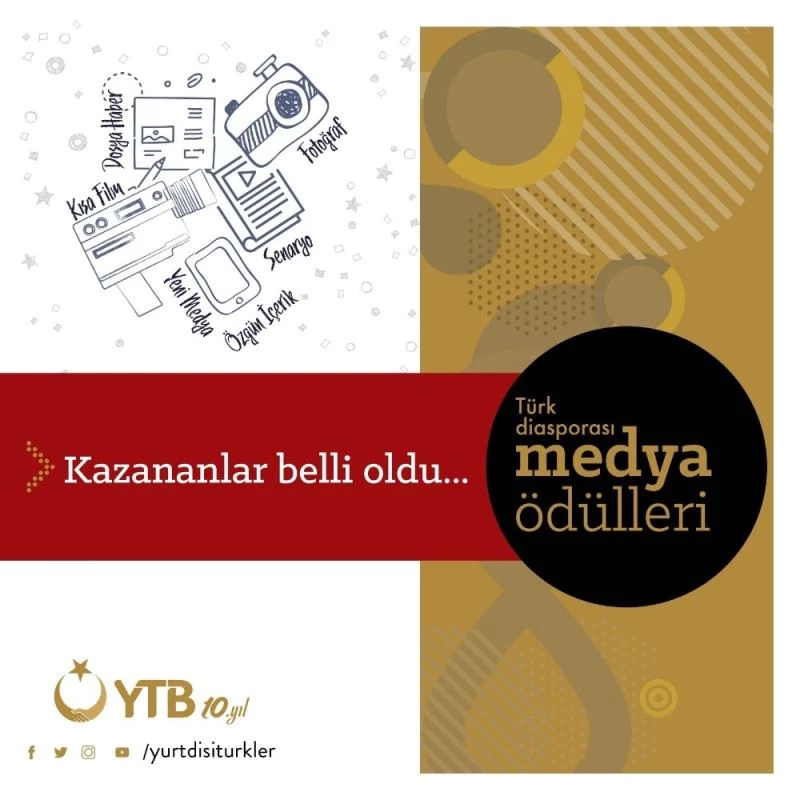 Yurtdışı Türkler ve Akraba Topluluklar Başkanlığı (YTB) tarafından Türk diasporasında medya alanında ortaya koyulan özgün ve nitelikli çalışmaları teşvik etmek ile geleceğin gazetecileri, iletişimcileri ve sinemacılarını desteklemek amacıyla gerçekleştirilen “Türk Diasporası Medya Ödülleri” yarışmasının kazananları belli oldu. 1 Mayıs 2020-18 Eylül 2020 tarihleri arasında gerçekleştirilen başvuruların ön değerlendirme süreci 28 Eylül 2020 tarihinde tamamlanarak başvuru sahiplerinin e-posta adreslerine olumlu ve olumsuz bilgilendirmeler yapıldı. Ön değerlendirme sürecinin ardından ise belirlenen eserler seçici kurul üyeleri tarafından şartnamelerde belirtilen temel kriterler çerçevesinde değerlendirilerek ödül almaya hak kazanan eserler tespit edildi.