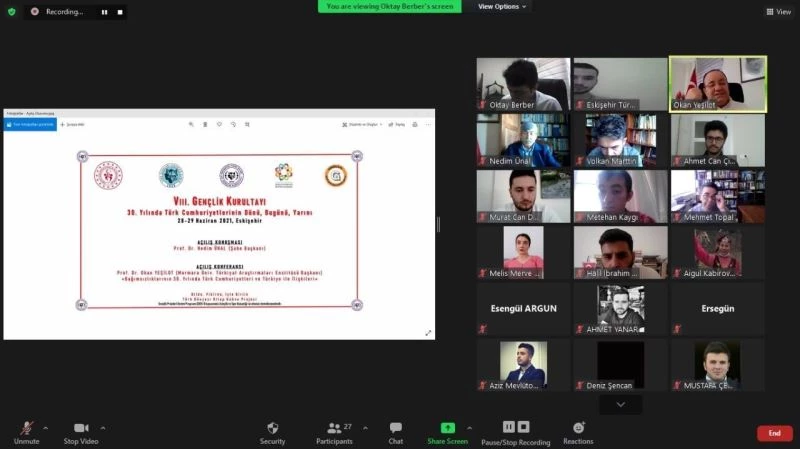 ‘30. Yılında Türk Cumhuriyetlerinin Dünü, Bugünü, Yarını’ temasıyla çevrimiçi gerçekleştirilen kurultayın açılış oturumunda söz alan Ocak Başkanı Prof. Dr. Nedim Ünal konuşmasında, “11 kilometrekare coğrafi alanda 7 devlet, 9 ayrı muhtar cumhuriyet ve takriben 280 milyon nüfusun Türkçe konuştuğu muazzam bir güçten bahsediyoruz. Türk Dünyasının siyasî, demografik, coğrafi, iktisadî ve kültürel imkânları bugün Türklük âleminin geleceğine dair, dirilişine dair bizlere ümit vermektedir. O bakımdan bu toplantının temasını Türk Cumhuriyetlerinin 30.yılına hasredilmesini manidar buluyor ve kutluyorum” ifadelerini kullandı.