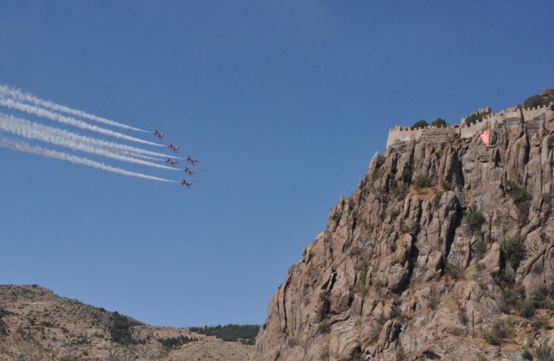 Büyük Taarruz ve Zafer Haftasının 98. yıl dönümü etkinlikleri kapsamında Türk Hava Kuvvetlerinin akrobasi timi Türk Yıldızları Afyonkarahisar’da gösteri yaptı. Kentin selamlanması ile başlayan gösteride akrobasi timindeki 5 uçak ardından tarihi Karahisar Kalesi üzerinde ‘Ay-Yıldız’ şekli çizdi. Pilotların uçaklarla yaptıkları akrobatik hareketler ise nefesleri kesti.