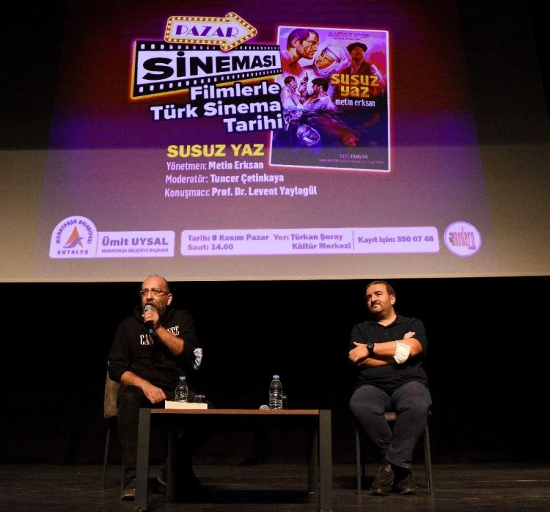 Pazar sineması’nın ilk programında, Metin Erksan’ın yönetmenliğini yaptığı ve Türk sinemasına Berlin Film Festivali’nde ilk büyük ödülü kazandıran 1963 yapımı ‘Susuz Yaz’ filmi gösterildi. Türkan Şoray Kültür Merkezi’ndeki gösterimin ardından Modern Zamanlar Sinema Derneği’nden Tuncer Çetinkaya moderatörlüğünde Akdeniz Üniversitesi İletişim Fakültesi’nden Prof. Dr. Levent Yaylagül’ün konuşmacı olarak katıldığı söyleşi gerçekleştirildi.