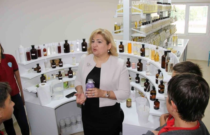 MSKÜ Kozmetik Ürünler Uygulama ve Araştırma Merkezi (KOZMER)’nin çalışmalarını yerinde görmek bilgi almak için yöredeki ilk, orta ve lise düzeyindeki öğrenciler merkezi ziyaret ediyor. KOZMER’e ziyarete gelen Menteşe Denizovası Ortaokulu öğrencilerine KOZMER Müdürü Prof. Dr. Nazan Demir ve Müdür Yardımcısı Prof. Dr. Yaşar Demir, organik sıvı sabun, organik kolonya yapımı ve bio malzemeler hakkında bilgi verdiler.
