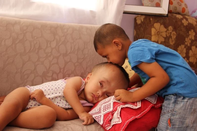 Minik Sercan’ın 5 yaşındaki abisi Umutcan Gezenler de kardeşini öperek sevgisini gösterdi.
