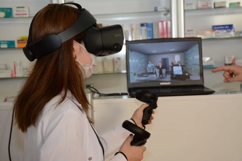 Uygulanan projenin, eğitim gören öğrencilere sanal gerçeklik ortamı kullanılarak deneyim kazandırılması hedeflediğini belirten SODİGEM Müdürü Doç. Dr. Yusuf Levent Şahin, sanal gerçeklikle beraber tehlikeden arındırılmış bir eğitim fırsatı sunulacağını söyledi. Proje hakkında açıklamalarda bulunan Doç. Dr. Şahin, “Bu proje, Anadolu Üniversitesi’nin önemli iki kurumu olan Eğitim Fakültesi ve Eczacılık Fakültesi’nin değerli akademisyenlerinin SODİGEM çatısı altında bir araya gelerek gerçekleştirdiği bir projedir. Öncelikli amaç, Eczacılık Fakültesi’nde öğrenim gören öğrencilerin, sanal gerçeklik ortamını kullanarak çeşitli anlamlarda mesleki deneyim kazanmalarına yöneliktir. Kısa sürede önemli bir ilerleme kaydettiğimiz projede özel bir kask takarak sanal ortama adım atan öğrenci, kendisini çevresiyle etkileşimde bulunabileceği eczane ya da hastane gibi bir ortamda bulmaktadır. Eczacılık Fakültesi’nin öğretim üyeleri tarafından tasarlanan bu ortam, gerçek hayata oldukça yakın bir deneyim sunmaktadır. Böylece eczacılık eğitiminde yer alması gereken birçok deneyim, oldukça ekonomik ve tehlikelerden arındırılmış olarak sunulabilmektedir. Ayrıca bu teknoloji, söz konusu deneyimi zamandan ve mekândan bağımsız hale getirmektedir” ifadelerini kullandı.