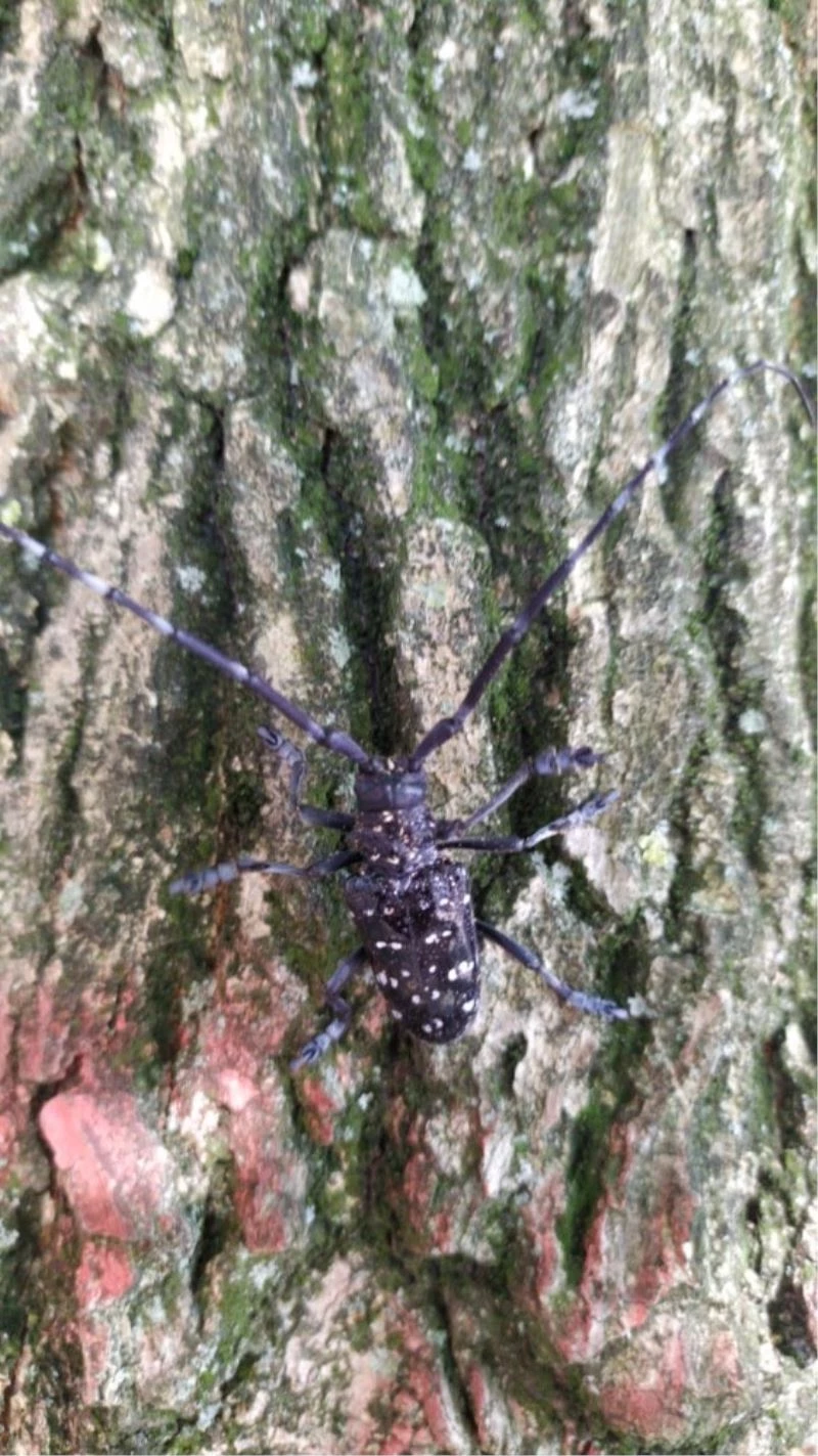 Ergin çıkış delikleri 10-15 mm çapında olabiliyor. Zararlı böcek siyah renkte uzun antenlere sahip, üzerinde beyaz lekeler bulunan 25-35 mm uzunluğunda. Bacaklarının üst kısımları beyazımsı mavimsi bir renkte. 300 metreye kadar uçabilen böceklerin zarar verdiği bölgenin 50 metre civarındaki diğer ağaçlarda da zarara yol açtığı gözlendi. Mayıs ve ağustos ayları arasında ortalama 1-3 ay yaşayan ergin böcekler özellikle bu aylarda yoğun olarak gözleniyor.