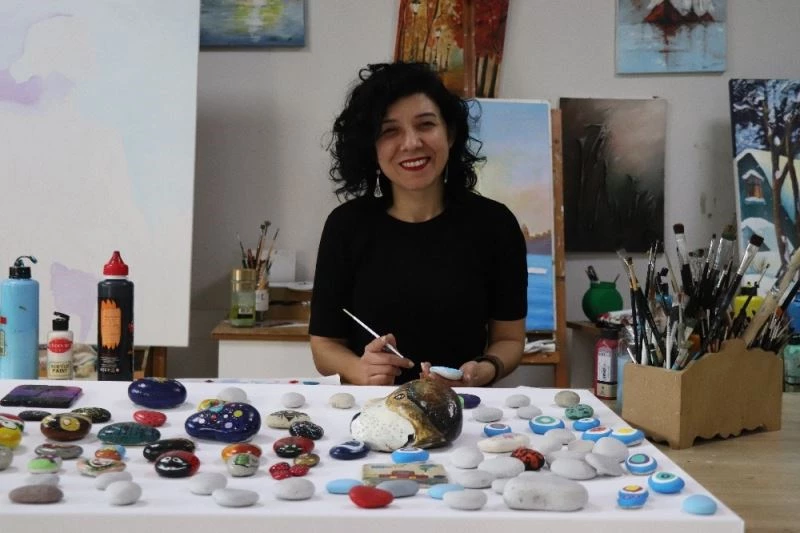 Denizli’de yaşayan resim öğretmeni Aysun Döner’in, taş boyama tekniğiyle kendi atölyesinde yaptığı minik tuvaller, sanatseverlerin beğenisini topluyor.