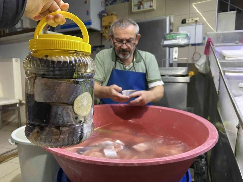 Karadenizli balıkçıların torik veya iri palamudu dilimleyerek özenle hazırladığı ‘lakerda’ tezgâhta yerini aldı. 2 kiloluk kavanozlarda hazırlanan lezzetin fiyatı ise 350 lira.