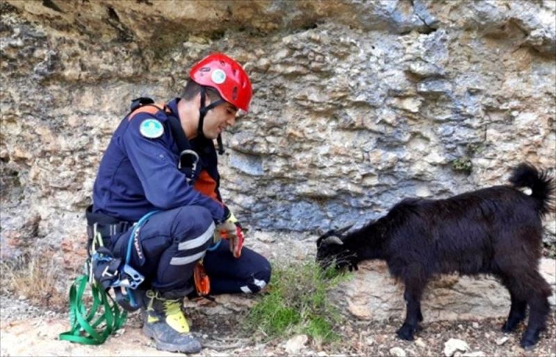 Itfaiye Dairesi Baskanligi Afet Arama ve Kurtarma Sube Müdürlügünce yapilan çalisma sonucunda, kayip keçilerin 50 metrelik uçurumda mahsur kaldigi belirlendi.