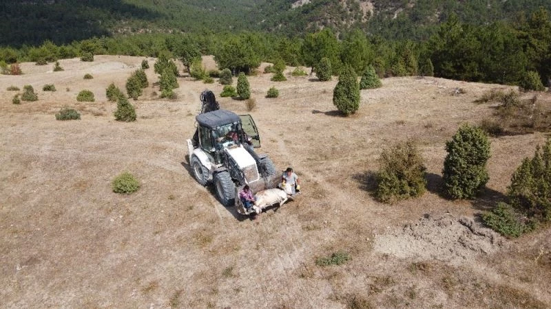 20 metrelik uçurumdan düşen inek sağ arka ayağından yaralanırken Dağoğlu, ineğin sahibi Gergen’e haber verdi. Olay yerine gelen Gergen, beraberinde Dağoğlu ve bir akrabası ile ineği çıkarmaya çalıştı. Yaralı ineği düştüğü yerden yaklaşık 300 metre götürebilen Gergen ve beraberindekiler, Karabük Afet ve Acil Durum Müdürlüğü (AFAD) ekiplerinden yardım istedi. AFAD ekibi, ineği kendilerinin çıkaramayacağını belirterek, İl Özel İdaresi ile iletişime geçti. İl Özel İdaresi tarafından ineğin bulunduğu yere kazıcı-yükleyici gönderdi. İneğin düştüğü alanda yol olmaması nedeniyle ilk önce yol açılırken, inek kazıcı-yükleyiciye konularak ormandan çıkarıldı.
