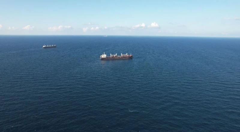 Tahıl sevkiyatı anlaşması çerçevesinde Çernomorsk Limanı’ndan hareket ederek İstanbul açıklarına ulaşan mısır yüklü ‘Rojen’ isimli gemi drone ile görüntülendi.