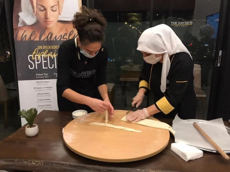 Kayseri’nin bilinmeyen yöresellerini tanıtmak istediklerini söyleyen The Kayseri Loft Hotel Yönetim Kurulu Üyesi Dilek Albayrak, “Ukraynalı misafirlerimize biz farklı bir şeyler göstermek istiyoruz. Herkesin yaptırdığı gibi değil de yöresel bir şeyler tattırmak istiyoruz. Sushi gibi değişik de bir açılım yapmak istedik. Geçen seneden beri yapıyoruz bunu. Workshop tadında hem yapıp hem yedikleri şeyler yapıyoruz. O kadar kültürel zenginliklerimiz var ki bunları yansıtamadığımızı düşünüyoruz. Bunları fark ettirmeye çalışıyoruz” dedi.