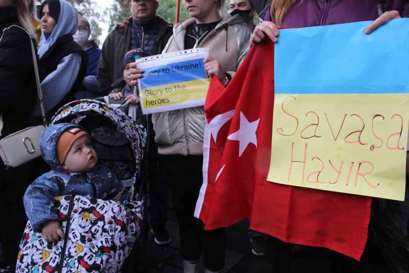 Mersin’de yaşayan Ukraynalılar, merkez ilçe Mezitli Belediyesi Demokrasi Meydanında toplanarak, Rusya ile Ukrayna arasında devam eden savaşa karşı tepkilerini dile getirdiler. Mersin Ukraynalılar Kültür ve Eğitim Derneği öncülüğünde bir araya gelen Ukraynalılara, başta Rusya vatandaşları olmak üzere Kırgızlar, Kazaklar, Belarus vatandaşları ve Türkler de destek verdi. Bazılarının çocuklarıyla katıldıkları eylemde Ukrayna ve Türk bayrakları açan grup, seslerinin duyulmasını istedi. Sloganlar ve pankartlarla ‘savaşa hayır’ diyen Ukraynalılardan bazıları gözyaşlarına hakim olamadı.