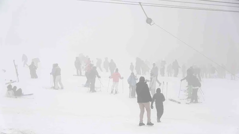 Uludağ’da yoğun sise rağmen pistlerde adım atacak yer kalmadı