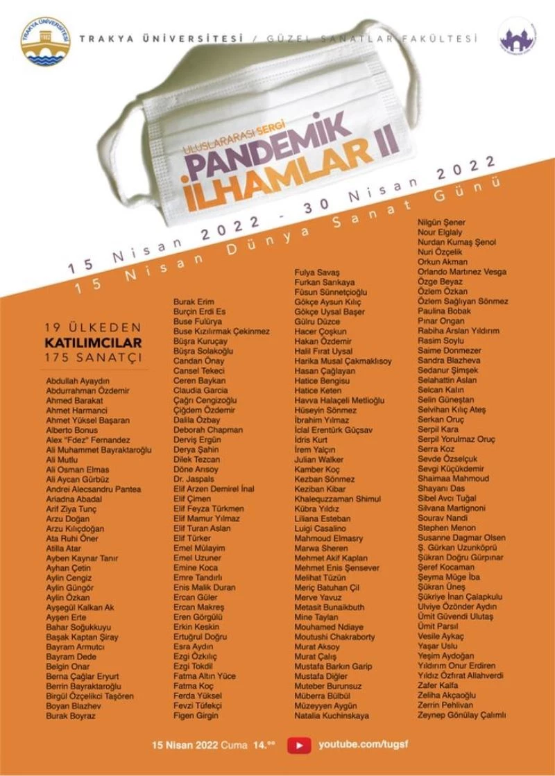 Trakya Üniversitesi Güzel Sanatlar Fakültesi, 15 Nisan Dünya Sanat Günü’nde “Pandemik İlhamlar II” sanal karma sergisi adı altında uluslararası çevrimiçi bir sergiye imza attı.