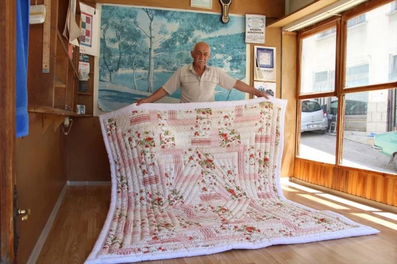 Fabrikalarda üretilen yıkanabilir elyaf ve silikon yorganlar son yıllarda tercih edildiği için el emeği yorgana talep azalsa da Ertuğrul, eski zamanların gözde mesleğini yaşatmak için direniyor.