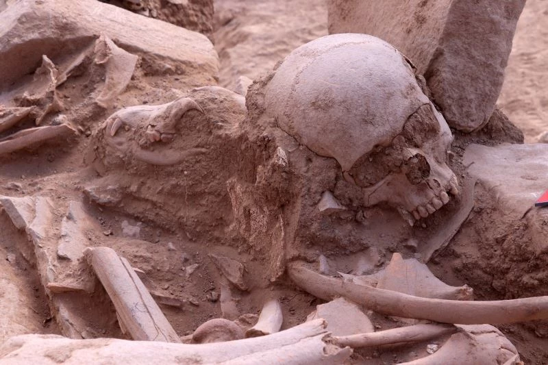 Aynı zamanda bir sığır ve koyunun da çenelerinin kesilerek mezara bırakıldığını tespit ettiklerini ifade eden Çavuşoğlu, “İnsan kemiklerinin parçalara ayrılmış atlarla kapatıldığını görüyoruz. Diğer bir husus ise hemen başının yanında bir köpek başı bulunuyor. Bu da bize atların eskiden kişinin zenginliğini ifade ettiğini gösteriyor. Dört atla birlikte gömülmüş olması, yönetici bir kişi veya askeri bir üst düzey kişi olduğunu bizlere gösteriyor. Burada yapmış olduğumuz çalışmalarda özellikle baş bölgesinde köpeğin yer alması da dikkat çekiyor. Biliyorsunuz köpek ve at sadık birer hayvan. Ölen kişi için atları ve köpeğinin kurban edilmesi de aklımıza geldi. Dinsel bir ritüel bulguyla karşı karşıyayız” diye konuştu.