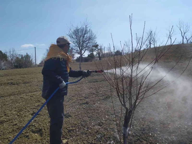 İç Ege’nin meyve ambarı olan Kütahya’nın Pazarlar ilçesinde meyve üreticileri baharın gelmesi ile arazilerindeki meyvelerin ilaçlama çalışmalarına bordo bulamacı ile başladı.